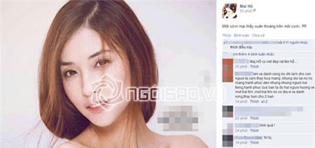 Trên trang cá nhân, Mai Hồ chuyển sang tình trạng độc thân và hotgirl xinh đẹp không còn chia sẻ những khoảnh khắc lãng mạn của cả hai. Thay vào đó, Mai Hồ vừa khoe bức ảnh đẹp mơ màng cùng lời nhắn: "Một sớm mai thấy xuân thoáng trên môi cười..!!!!!". Rất nhiều người hâm mộ khen ngợi hình ảnh đẹp của Mai Hồ và không khỏi bày tỏ lời tiếc nuối về chuyện tình nồng nàn của cặp đôi.