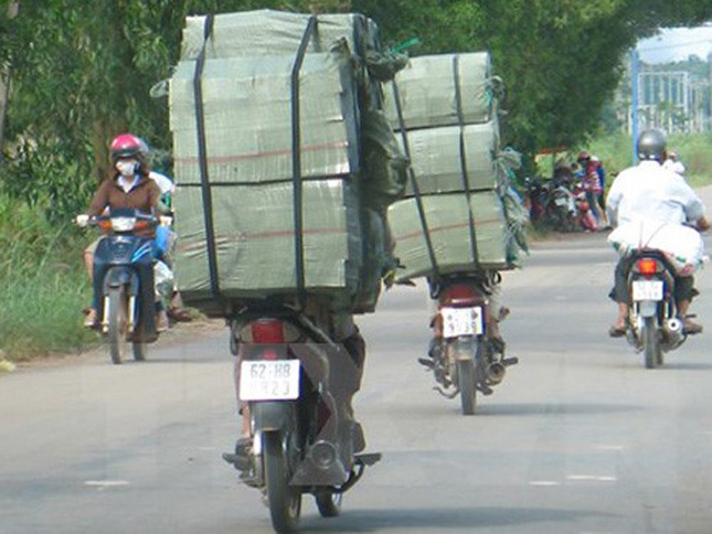 Xe lái buôn thồ hàng cồng kềnh, lao nhanh trên đường ảnh hưởng đến giao thông.