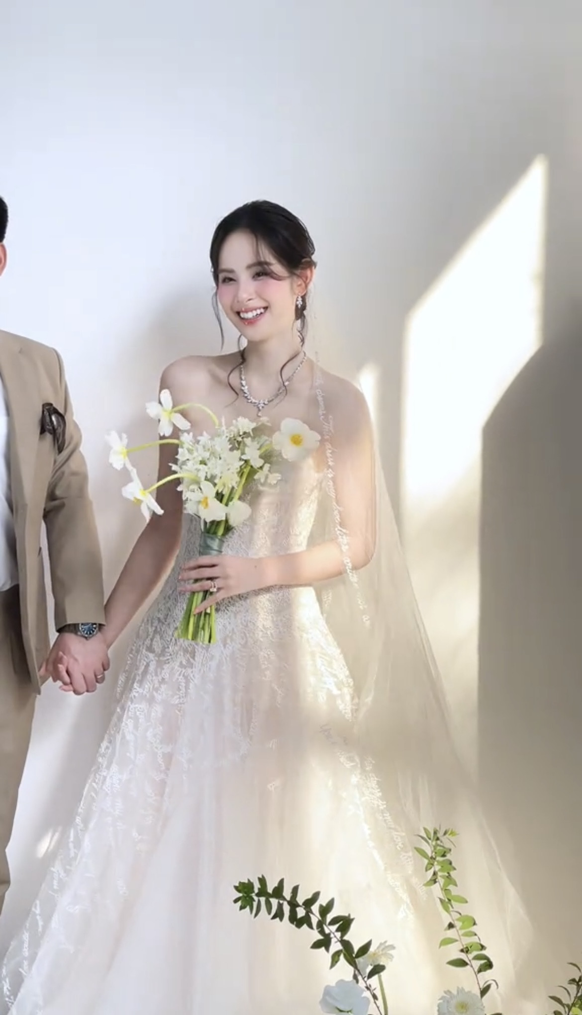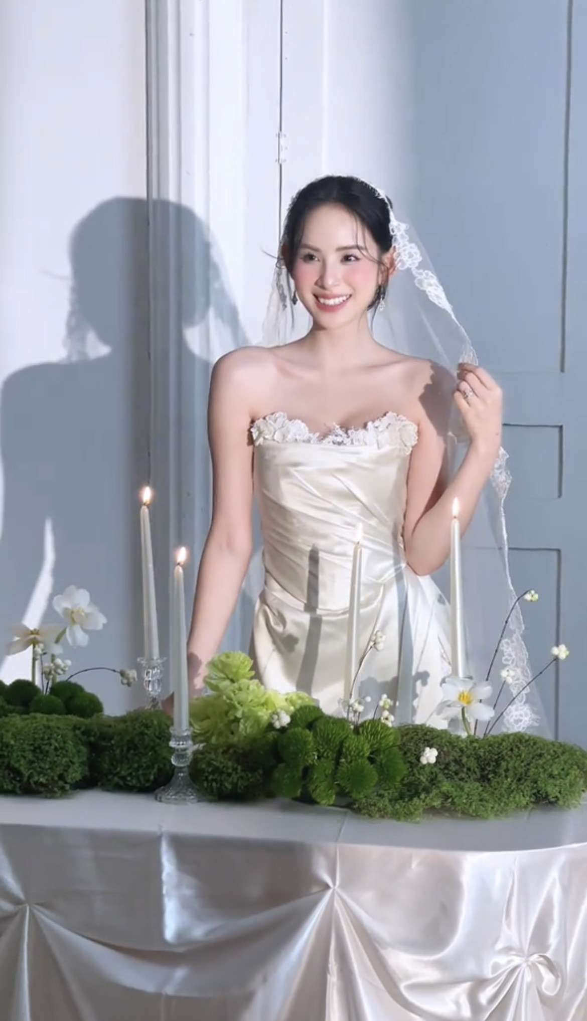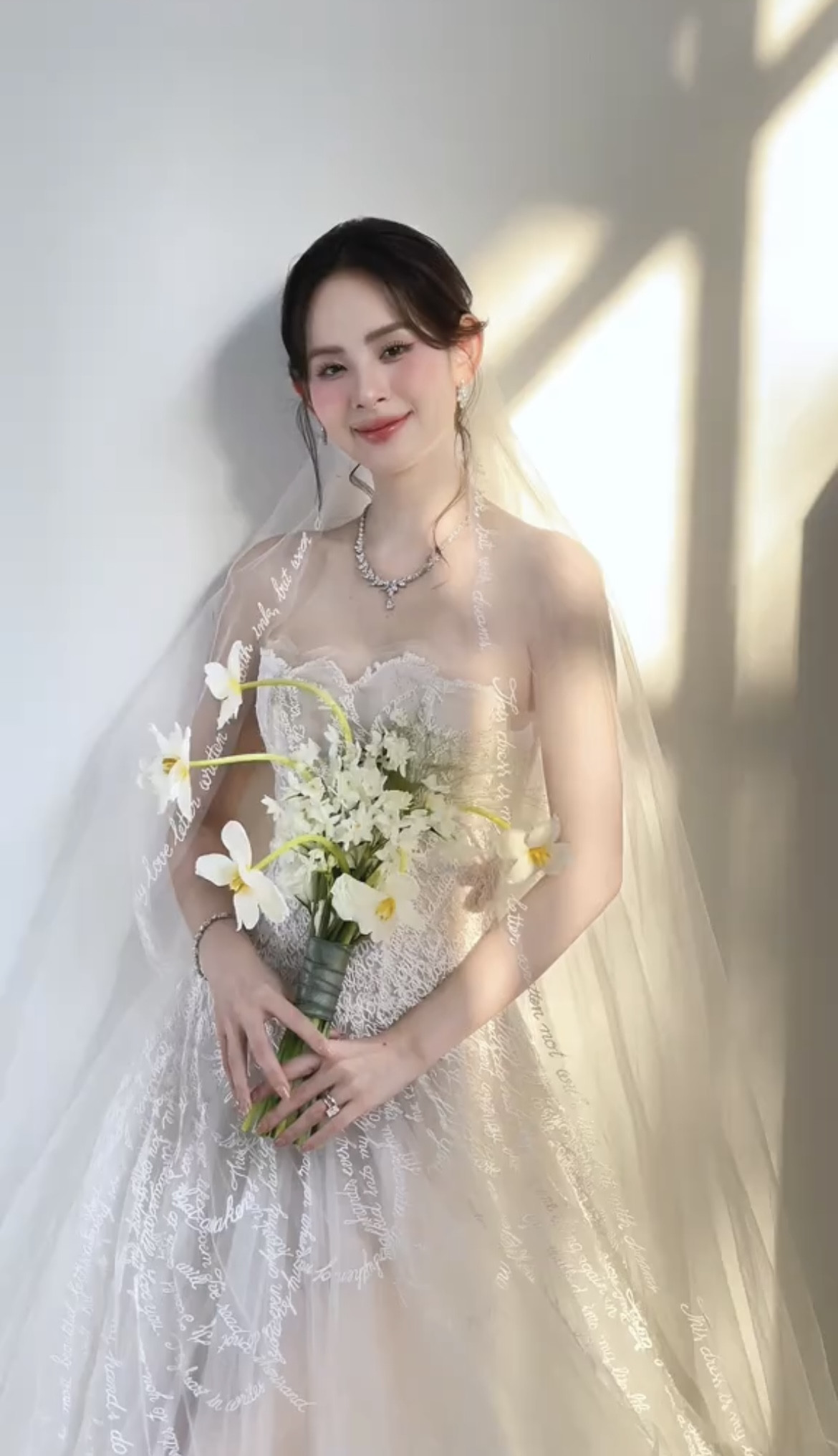 Hương Liên sinh năm 2002, là mẫu ảnh có tiếng. Cô gây ấn tượng nhờ sở hữu gương mặt xinh đẹp, vóc dáng vạn người mê, được mệnh danh là "Kim Tae Hee phiên bản Việt".Tên tuổi của người đẹp được nhiều người biết đến hơn khi tham gia chương trình The Face Vietnam 2023. Tuy nhiên, thành viên đội HLV Vũ Thu Phương không giành được thứ hạng cao khi dừng chân trước thềm chung kết của chương trình.Đầu tháng 6 vừa qua, Hương Liên là cái tên nhận về nhiều quan tâm khi cô nên duyên cùng Minh Trung - một thiếu gia con nhà gia thế."Liên xin gửi lời cảm ơn chân thành đến mọi người đã dành những lời chúc tốt đẹp nhân ngày vui của gia đình. Liên xin trân trọng giới thiệu, vị hôn phu của mình là anh Lê Minh Trung, hiện là cán bộ nhà nước đang công tác tại một cơ quan nhà nước", người đẹp từng flex về ông xã vừa giỏi vừa giàu.Cho đến mới đây trên mạng xã hội liên tục lan truyền loạt ảnh cưới của cô và ông xã thiếu gia. Trong hình, Hương Liên diện chiếc váy cúp ngực, trang điểm nhẹ nhàng.Dù chỉ là những bức ảnh "nhá hàng" ai cũng phải xuýt xoa bởi nhan sắc cô dâu "tuyệt đối điện ảnh".Nhưng điều khiến dân mạng chú ý chính là việc mỹ nhân 10X quyết định giấu kín mặt nửa kia. Dù vậy, Minh Trung được nhận xét sở hữu ngoại hình phong độ.Nhiều người cho rằng đây là cách Hương Liên bảo vệ những người mà mình yêu quý. Bởi thời gian qua ông xã của cô liên tục dính những tin đồn không hay khiến cô phải lên tiếng đính chính.Trong một tâm sự trước đó, học trò Vũ Thu Phương từng tiết lộ cặp đôi quen biết qua sự mai mối, tác thành từ bố mẹ 2 bên.