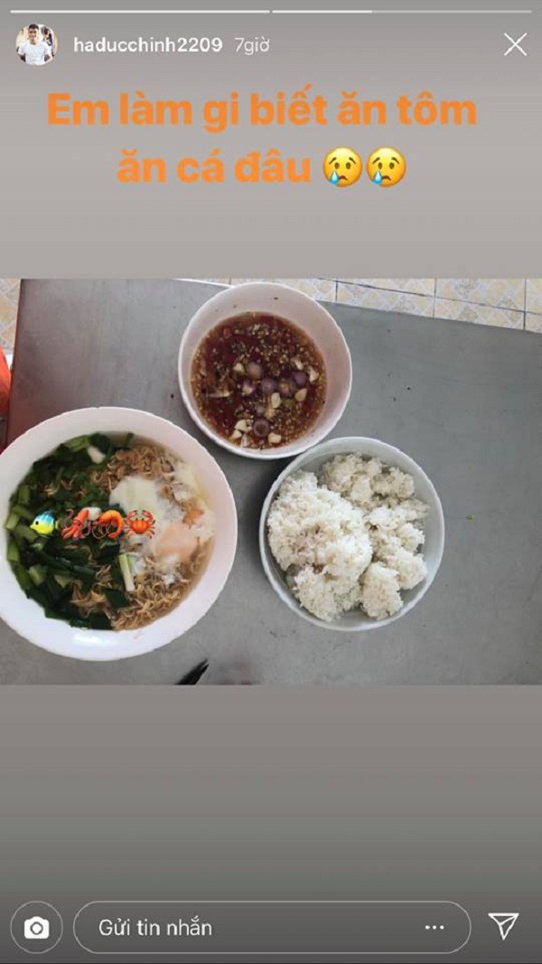 Thế là có một bữa ăn đầy đủ chất dinh dưỡng, anh chàng hài hước viết thêm: “Anh làm gì biết ăn tôm, ăn cá đâu”.
