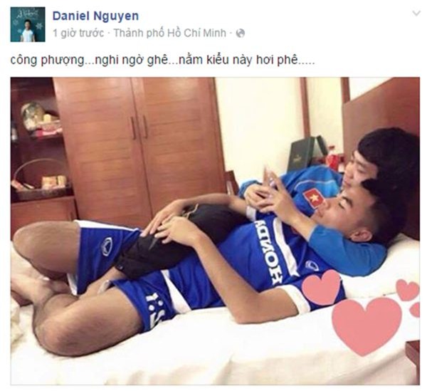 Hình ảnh của Công Phượng với anh chàng điển trai khá thân thiết khi nằm chung được cư dân mạng chú ý. Bức ảnh có lượt share và like chóng mặt. Nhiều người hài hước bình luận “Đẹp đôi đó nha”, “Tình cảm quá”, … Fan Công Phương ra sức bảo vệ thần tượng và cho rằng đây là hình ảnh hết sức bình thường không có gì đáng bàn cãi.