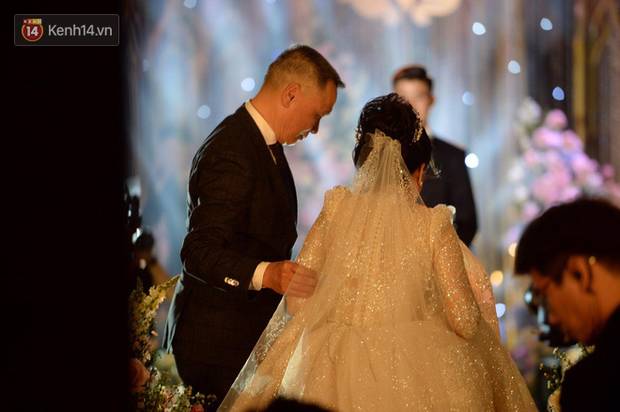 Giây phút chú rể Duy Mạnh và cô dâu Quỳnh Anh trao cho nhau chiếc nhẫn cưới trong sự chứng kiến của gia đình hai bên cùng quan khách, ai cũng như vỡ òa. Giọt nước mắt đã rơi trên khuôn mặt của cả hai, những nụ cười, những ánh mắt đong đầy tình yêu cũng luôn thường trực. Lễ cưới diễn ra với loạt khoảnh khắc vừa xúc động, vừa lấp lánh như cổ tích khiến mọi người tấm tắc: Cuối cùng, công chúa và hoàng tử đã có happy-ending rồi!