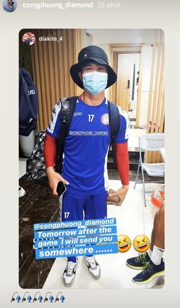 Ngoài sân cỏ, Công Phượng cũng cho thấy mình đang vui vẻ và thoải mái thế nào bên cạnh những người bạn thân như Phi Sơn hay Huy Toàn. Anh thường xuyên có những hành đồng pha trò khiến tất cả phải bật cười. Mới đây, trên trang cá nhân, ngoại binh Pape Diakite đã chia sẻ hình ảnh Công Phượng "trang bị" kín mít từ đầu đến chân trước khi đi tập cùng dòng trạng thái: "Sau trận đấu ngày mai, tôi sẽ đưa anh ra ngoài ngay lập tức".