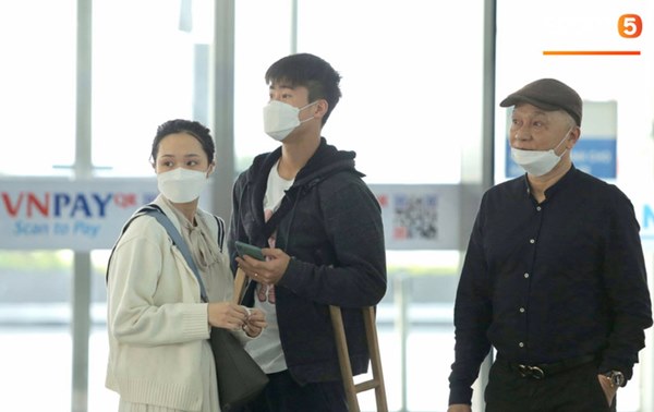 Quỳnh Anh và một số người thân lên sân bay tiễn chàng tuyển thủ.