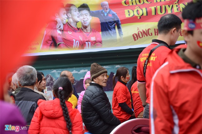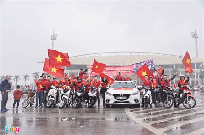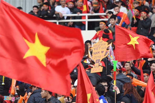 13h, vẫn còn hai tiếng nữa trận đấu giành ngôi vô địch cúp U23 Châu Á mới diễn ra nhưng hàng nghìn cổ động viên đã ùn ùn đổ vào sân Mỹ Đình. Tầng 2 khán đài A sắp chật kín, sân rực một màu cờ đỏ sao vàng. Rất may mắn là trời đã ngớt mưa. Sân Mỹ Đình lúc này như đang chuẩn bị cho một trận đấu thật sự phía dưới sân bóng.