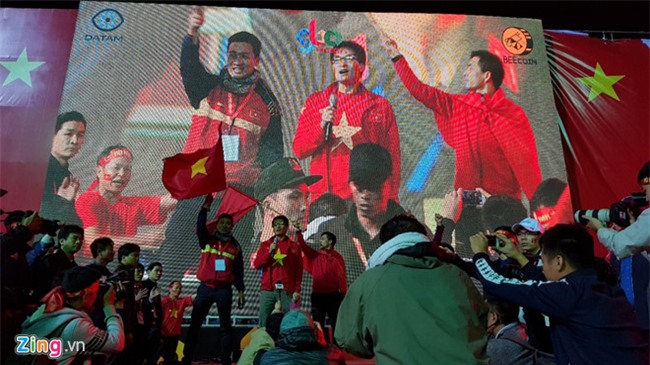 Phó thủ tướng Vũ Đức Đam sau đó lên sân khấu, kêu gọi các cổ động viên xướng tên HLV Park Hang-seo và tên tất cả cầu thủ. Lúc này, nhiều người đã rơi nước mắt.