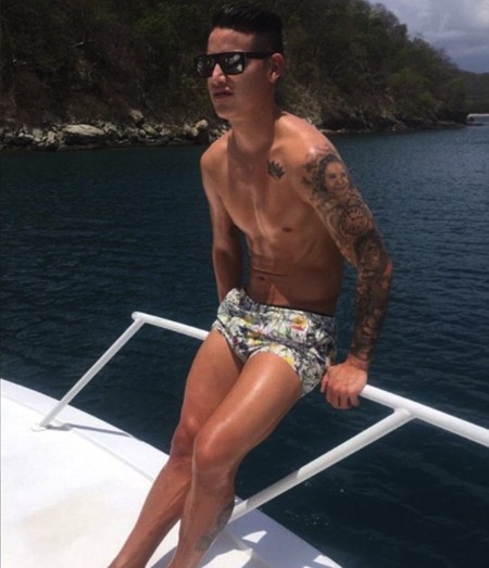So với hai đồng nghiệp nói trên, James Rodriguez có phần “cô đơn” hơn khi không có vợ con ở bên trong kì nghỉ hè. Sau khi ly dị mỹ nhân Daniela Ospina, Rodriguez đã vướng tin đồn hẹn hò siêu mẫu người Nga Helga Lovekaty. Tuy nhiên, khá ngạc nhiên khi Helga Lovekaty lại không xuất hiện mà để James Rodriguez phải “lẻ bóng” cởi áo khoe cơ bụng trên boong tàu.