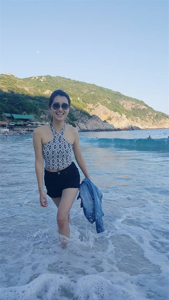 Cô nàng khoe vóc dáng thon gọn, gợi cảm cùng đôi chân dài thẳng tắp trong một lần đi biển.