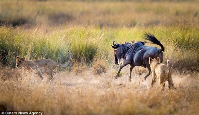 Khi dạy sư tử con săn mồi, sư tử bố mẹ luôn luôn để con ra chiến đấu trước