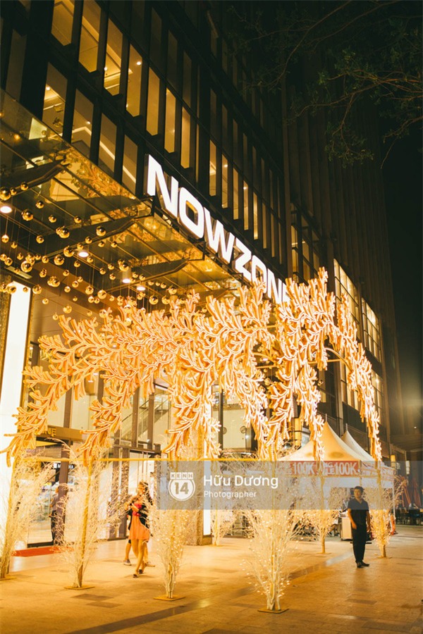 Now Zone chính là nơi khiến người Sài Gòn phải ngạc nhiên vì thiết kế cực kỳ đơn giản nhưng lại vô cùng sang trọng. Lấy chủ đề là những bông tuyết trắng tỏa sáng trong đêm Giáng Sinh, ngay trước cửa chính có cả một mái vòm được dựng từ những bông tuyết và những quả châu vàng được thắp sáng tạo cảm giác lấp lánh và vô cùng ấm áp, sang trọng.