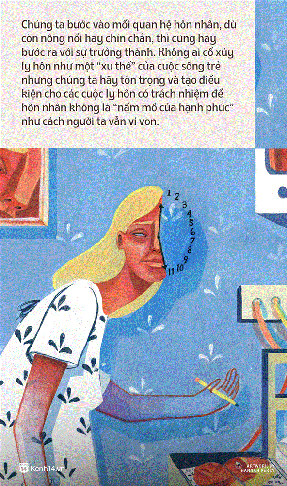 Ly hôn là quyết định của mỗi cá nhân với những ảnh hưởng đến rất nhiều người. Khi suy nghĩ ly hôn đến trong đầu, hãy nghĩ cho bản thân trước vì chỉ khi bạn hạnh phúc mới có thể mang đến hạnh phúc cho những người xung quanh. Chúng ta bước vào mối quan hệ hôn nhân, dù còn nông nổi hay chín chắn, thì cũng hãy bước ra với sự trưởng thành. Không ai cổ xúy ly hôn như một "xu thế" của cuộc sống trẻ nhưng chúng ta hãy tôn trọng và tạo điều kiện cho các cuộc ly hôn có trách nhiệm để hôn nhân không là "nấm mồ của hạnh phúc" như cách người ta vẫn ví von.