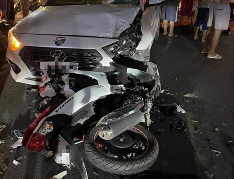 Cả ôtô và xe máy đều vỡ nát sau cú tông trực diện