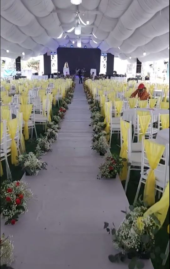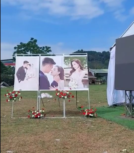 Không gian tiệc cưới Tài Tài - Phạm Hiếu tại sân bóng quê hương (Ảnh chụp màn hình)