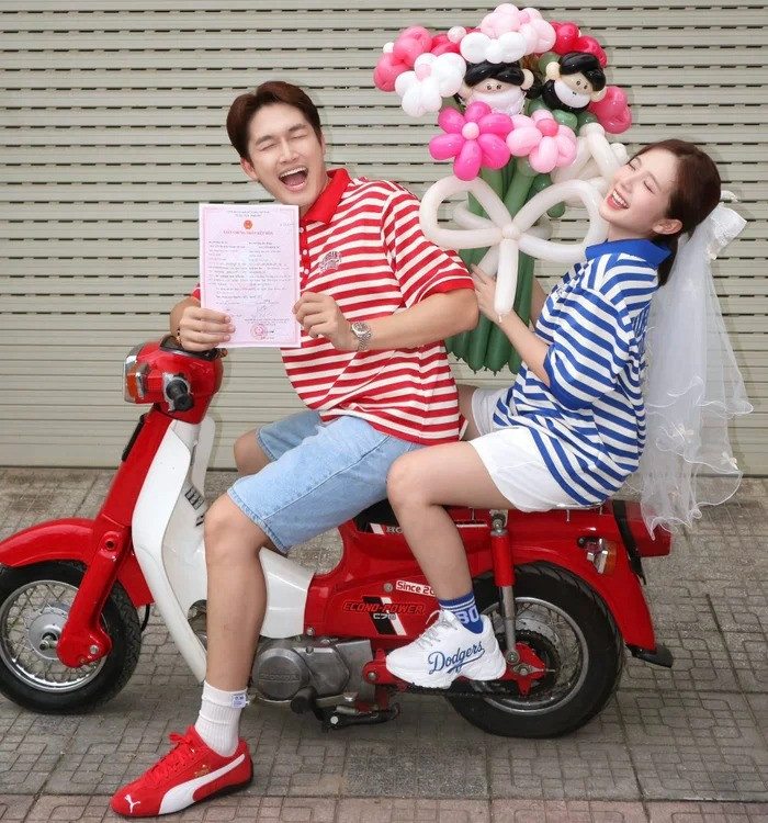 Ngay sau đó, cặp đôi tiếp tục xả loạt ảnh đi đăng kí kết hôn khiến dân tình choáng váng vì màn đánh dấu chủ quyền "quá nhanh quá nguy hiểm" của cặp đôi. Nữ diễn viên đăng hình kèm dòng chú thích: "Danh hiệu đầu tiên trong cuộc đời tôi. Nghệ sĩ iu Tú".