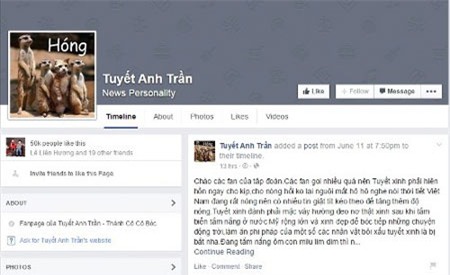facebook Tuyết Anh Trần – một trong những facebook mà Trần Thị Hương