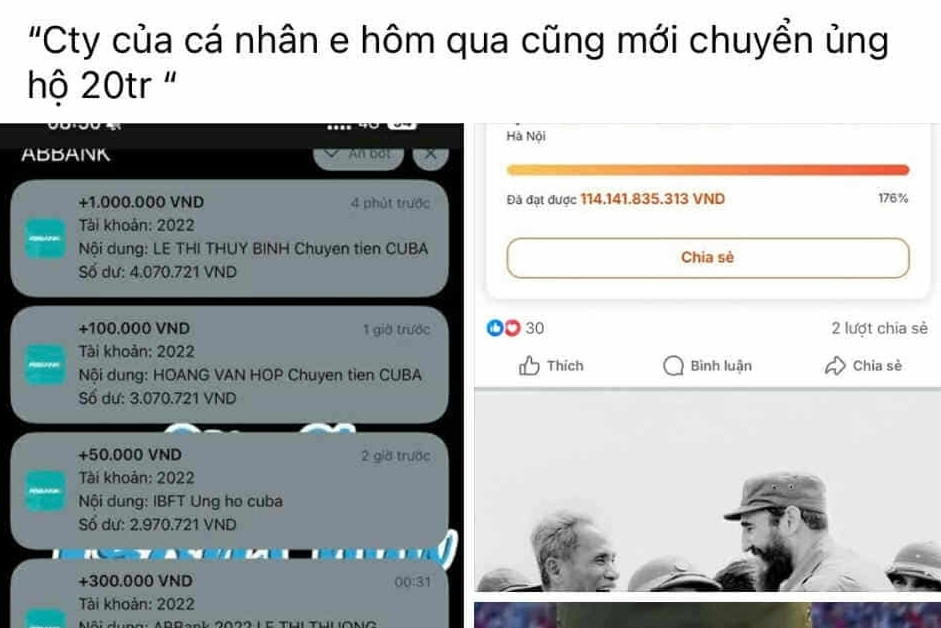 "Làm theo lời kêu gọi của Chính phủ nước ta. Vợ chồng em Hải Huyền xin được ủng hộ người dân Cuba và cầu chúc cho đất nước Cuba luôn bình an. Chúng ta hãy cùng nhau chung tay nhé", bài đăng của Chu Thanh Huyền nhận về hơn 12 nghìn lượt cảm xúc chỉ sau chưa đầy 1 ngày đăng tải.