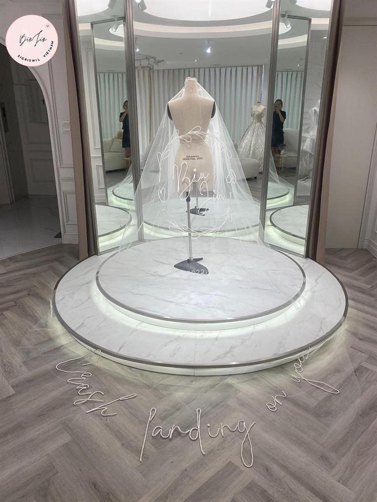 Khăn voan cưới khá dài có thêu dòng chữ tên ghép giữa Hyun Bin - Son Ye Jin.