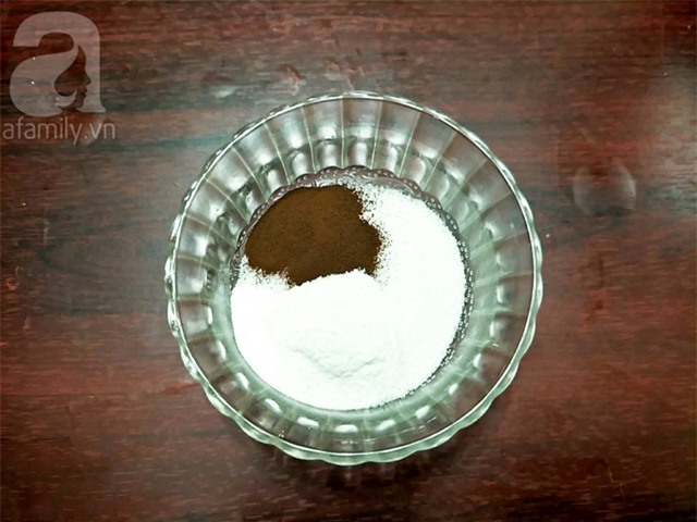 Bạn cho đường, bột thạch, bột cà phê vào 1 cái bát và trộn đều lên.