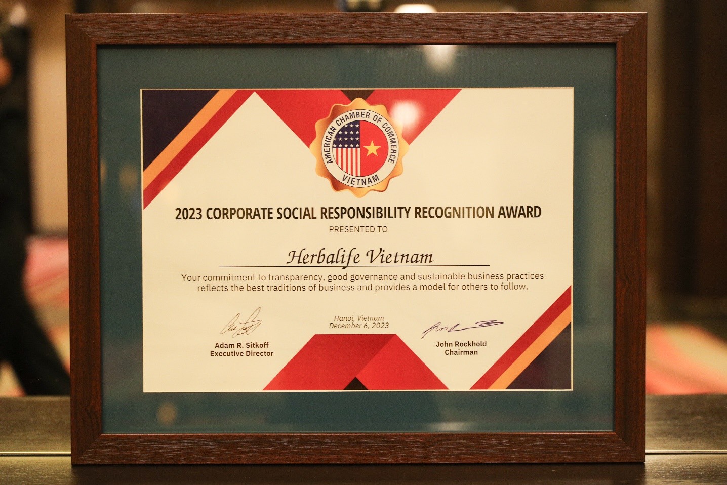 Đây là lần thứ 6 liên tiếp Herbalife Việt Nam được AmCham vinh danh.