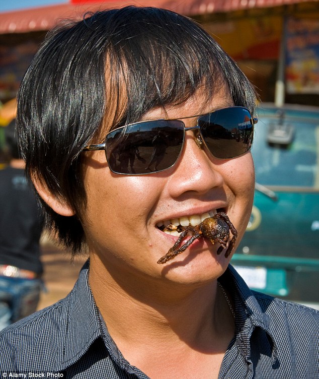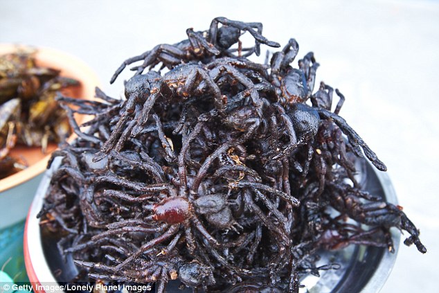 Du khách thưởng thức món nhện đen chiên theo kiểu Campuchia