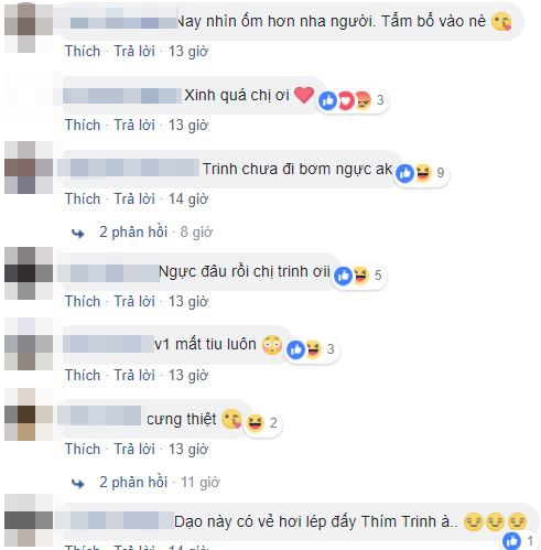 Nhưng điều khiến cư dân mạng đặc biệt chú ý là vòng một phẳng lì của Ngọc Trinh. Ở góc chụp nghiêng, gần như không thể thấy được "gò bồng đào" của cô nàng. Nhiều fan thắc mắc: "Ngực đâu mất rồi Trinh ơi", "Vòng một mất tiêu luôn", "Dạo này có vẻ hơi lép đấy thím Trinh à"...