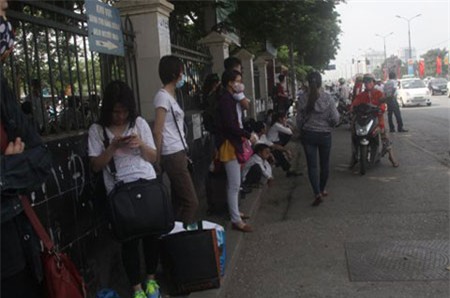 Mệt mỏi chờ đợi người nhà ra đón trên đường Giải Phóng. |