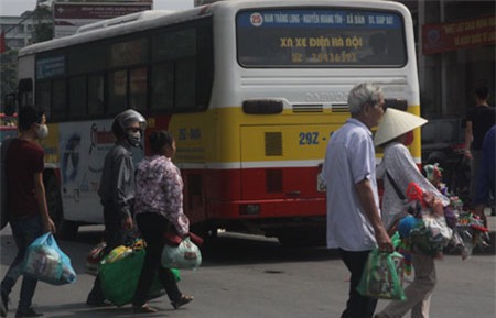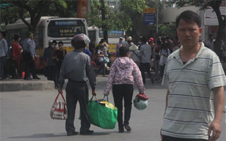 Cảnh tượng "gồng gánh" trở về Thủ đô của người dân ngoại tỉnh. |