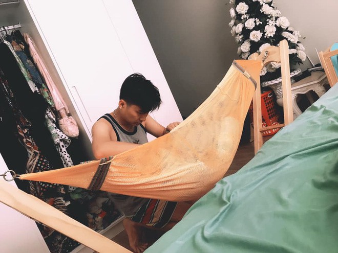 Trước đó, ông xã Lâm Khánh Chi cũng từng gây chú ý với hình ảnh ru con ngủ phụ vợ.