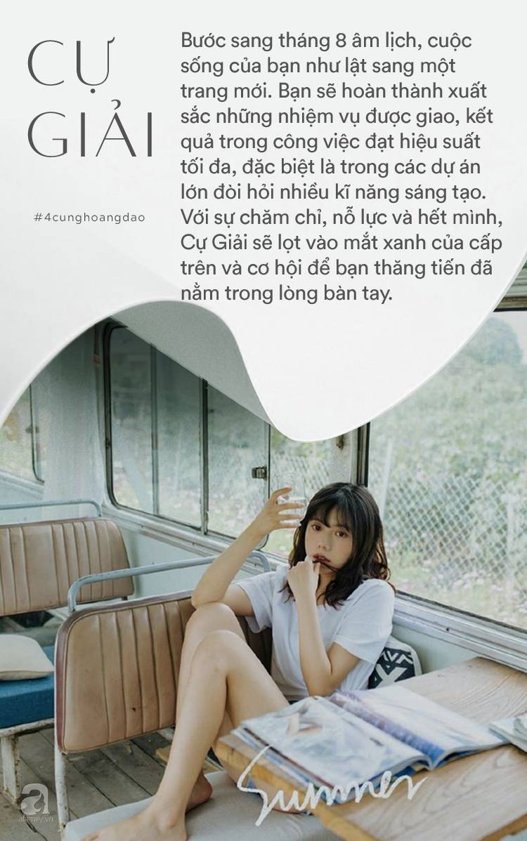 Cự Giải là cung Hoàng đạo kiên trì, nhẫn nại, có tầm nhìn xa trông rộng và có con mắt vô cùng tinh tế. Cự Giải luôn hướng đến cuộc sống bình yên, nhẹ nhàng, tuy nhiên, cũng có những lúc bạn phải đối mặt với khó khăn, trắc trở. Tháng 7 âm lịch là một trong những giai đoạn thử thách lòng kiên nhẫn và sự quyết tâm của Cự Giải. Bước sang tháng 8 âm lịch, cuộc sống của bạn như lật sang một trang mới. Bạn sẽ hoàn thành xuất sắc những nhiệm vụ được giao, kết quả trong công việc đạt hiệu suất tối đa, đặc biệt là trong các dự án lớn đòi hỏi nhiều kĩ năng sáng tạo. Với sự chăm chỉ, nỗ lực và hết mình, Cự Giải sẽ lọt vào mắt xanh của cấp trên và cơ hội để bạn thăng tiến đã nằm trong lòng bàn tay. Chưa hết, từ giờ đến cuối năm, nếu làm kinh doanh buôn bán, lợi nhuận Cự Giải thu về sẽ khiến bạn giàu lên nhanh chóng.