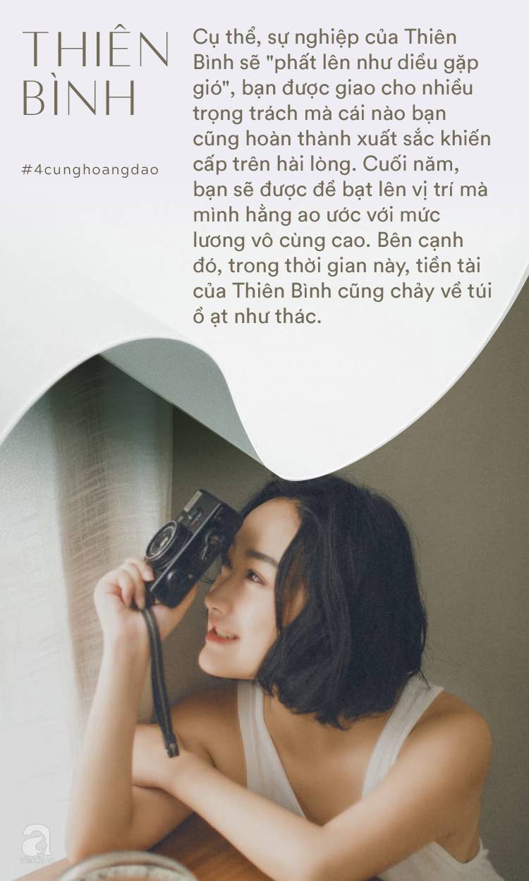 Thiên Bình là người luôn giữ cho mình trạng thái hài hòa, cân bằng giữa lao động và hưởng thụ. Bạn là người có trách nhiệm, có tài lãnh đạo đồng thời luôn nhận được sự ủng hộ, yêu quý của những người xung quanh. Tháng 7 "cô hồn", mọi việc trong cuộc sống của Thiên Bình bỗng dưng bị xáo trộn, đôi lúc bạn cảm thấy thất vọng và muốn buông xuôi. Nhưng đừng lo, từ tháng 8 âm lịch trở đi, thần may mắn sẽ lại mỉm cười và ở bên bạn mọi lúc mọi nơi. Cụ thể, sự nghiệp của Thiên Bình sẽ "phất lên như diều gặp gió", bạn được giao cho nhiều trọng trách mà cái nào bạn cũng hoàn thành xuất sắc khiến cấp trên hài lòng. Cuối năm, bạn sẽ được đề bạt lên vị trí mà mình hằng ao ước với mức lương vô cùng cao. Bên cạnh đó, trong thời gian này, tiền tài của Thiên Bình cũng chảy về túi ồ ạt như thác, một tương lai mua hàng không cần nhìn giá đang chờ bạn đấy!