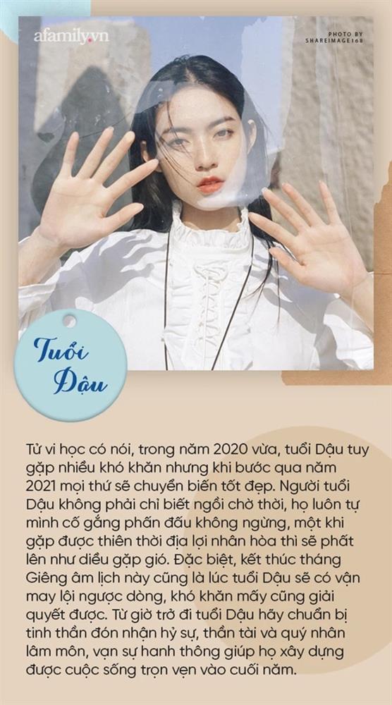 Tử vi học có nói, trong năm 2020 vừa, tuổi Dậu tuy gặp nhiều khó khăn nhưng khi bước qua năm 2021 mọi thứ sẽ chuyển biến tốt đẹp. Người tuổi Dậu không phải chỉ biết ngồi chờ thời, họ luôn tự mình cố gắng phấn đấu không ngừng, một khi gặp được thiên thời địa lợi nhân hòa thì sẽ phất lên như diều gặp gió. Đặc biệt, kết thúc tháng Giêng âm lịch này cũng là lúc tuổi Dậu sẽ có vận may lội ngược dòng, khó khăn mấy cũng giải quyết được. Từ giờ trở đi tuổi Dậu hãy chuẩn bị tinh thần đón nhận hỷ sự, thần tài và quý nhân lâm môn, vạn sự hanh thông giúp họ xây dựng được cuộc sống trọn vẹn vào cuối năm.