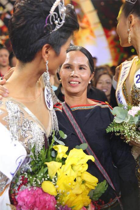 Cái ôm trìu mến của Hoa hậu H' hen Niê với mẹ ngay khi đoạt vương miện Hoa hậu Hoàn vũ Việt Nam 2017.