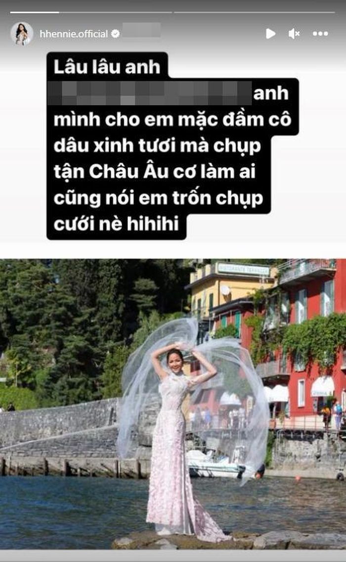 Mới đây, trên mạng xã hội xuất hiện đoạn clip ghi lại loạt khoảnh khắc H'Hen Niêmặc váy cưới ở châu Âu cùng với dòng chú thích gợi mở về việc nàng Hậu chuẩn bị lên xe hoa đã thu hút sự chú ý của cộng đồng mạng.