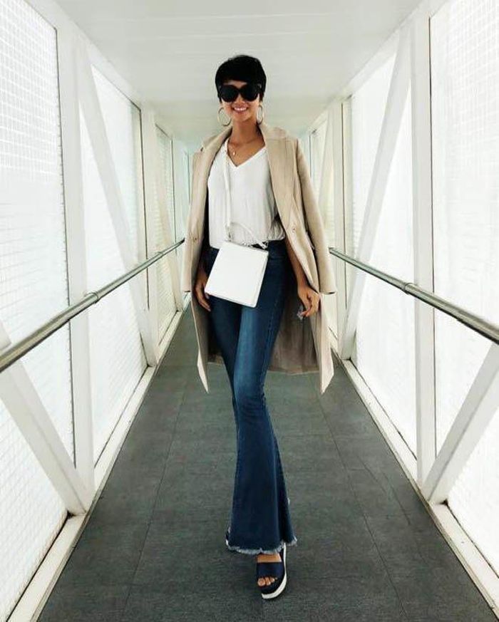 Những mẫu quần ống loe không chỉ mang đến hình ảnh năng động, trẻ trung cho H'Hen Niê mà còn giúp cô tỏa sáng với đôi chân dài miên man.