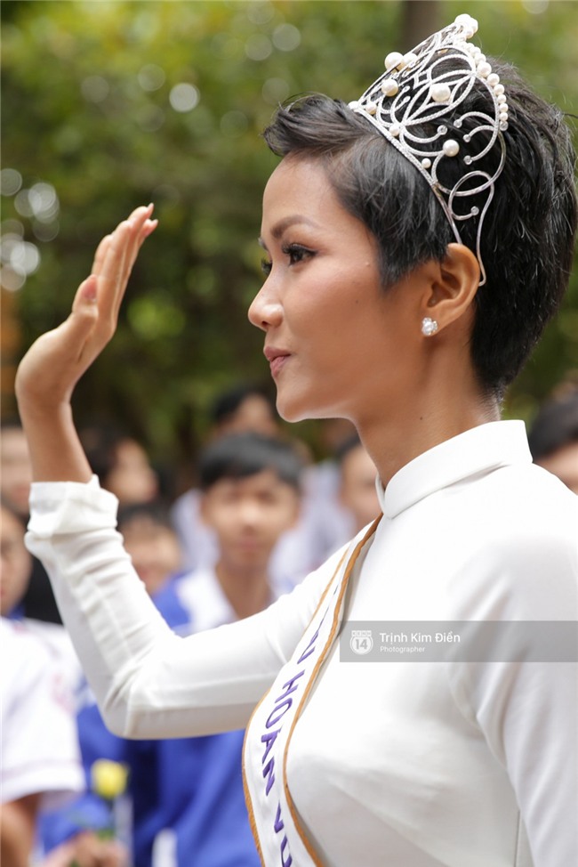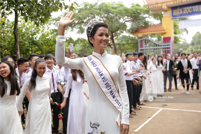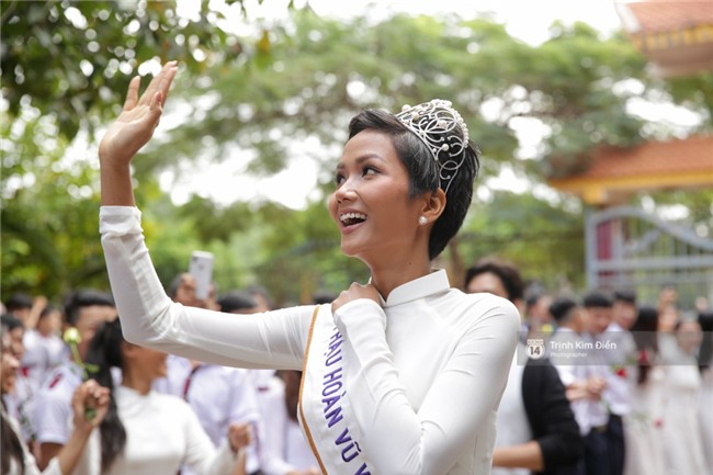 Sáng 23/1, Tân Hoa hậu Hoàn vũ H'Hen Niê đã có chuyến về thăm trường THPT Lê Hữu Trác - một trong những cái nôi nuôi dưỡng người đẹp nên người. Ngay từ sớm, hàng ngàn học sinh cùng các thầy cô giáo trong không khí nô nức, hân hoan để đón chào Tân Hoa hậu trở về. Sự xuất hiện của H'Hen Niê trong tà áo dài trắng làm cho trường THPT Lê Hữu Trác thực sự vỡ oà.
