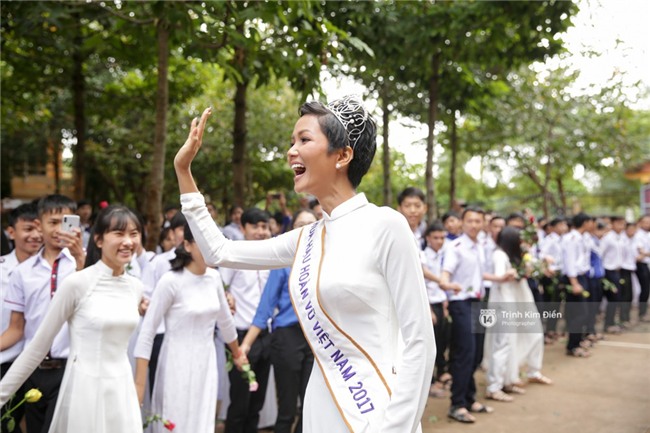 Tân Hoa hậu H'Hen Niê đã có mặt tại trường THPT Lê Hữu Trác - trường cấp 3 nơi người đẹp theo học.
