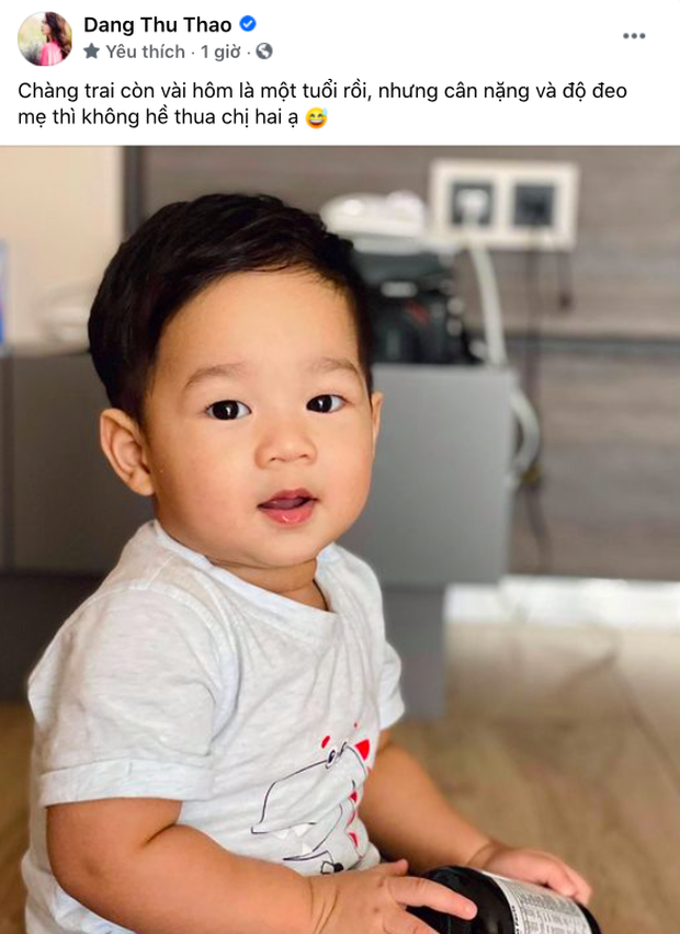 Trước khoảnh khắc cực đáng yêu của con trai, Đặng Thu Thảo tiết lộ bé rất giống chị gái Sophie ở điểm thích... đu bám mẹ. "Chàng trai còn vài hôm là một tuổi rồi, nhưng cân nặng và độ đeo mẹ thì không hề thua chị hai ạ", Đặng Thu Thảo dí dỏm viết. Ngay lập tức, hình ảnh này đã nhận về lia lịa những lượt "thả tim" từ đông đảo khán giả.