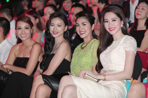 Khoảnh khắc hiếm hoi Hoa hậu Đặng Thu Thảo (thứ hai bên trái) và Tăng Thanh Hà (thứ hai bên phải sang) cùng xuất hiện chung khung hình.