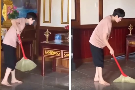 Netizen tiếp tục lan truyền cảnh Hiền Hồ đang quét chùa, ăn mặc giản dị.