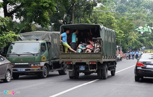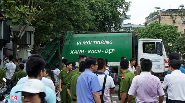 | Công ty môi trường đô thị điều nhiều xe rác đến để chở phế liệu ra khỏi hiện trường. |
