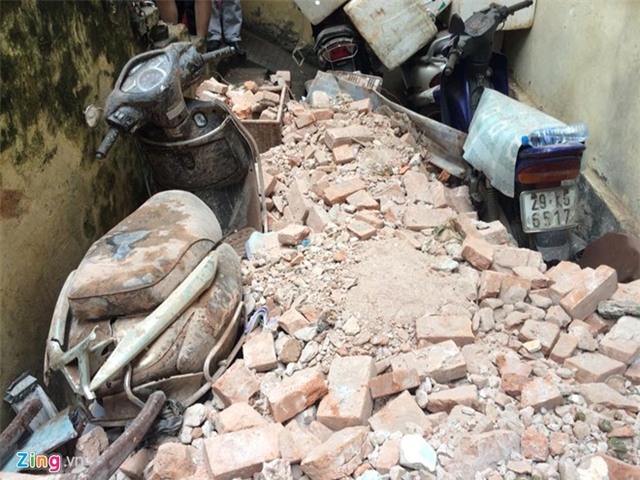 | Hàng chục xe máy bị chôn vùi giữa lớp gạch vữa ngổn ngang. |