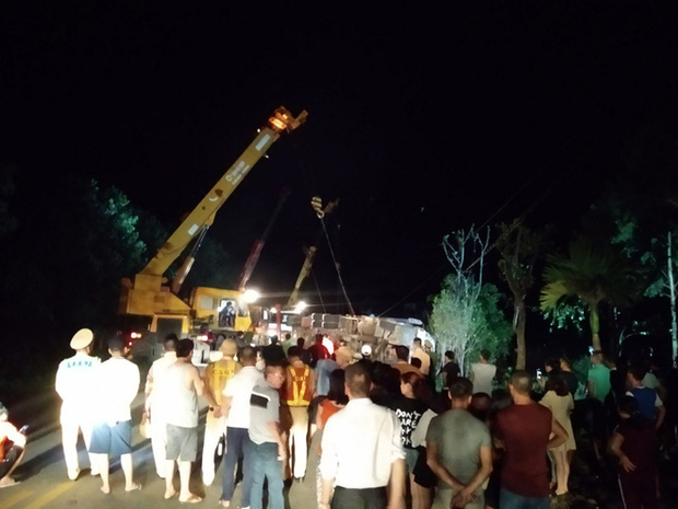 Xe khách đã được cẩu đi lúc 3h30 sáng cùng ngày, thi thể 3 nạn nhân được đưa về trung tâm y tế huyện chờ gia đình đến nhận - Ảnh: VOV