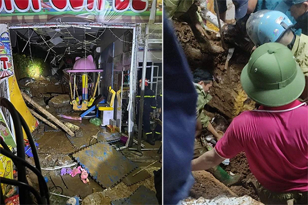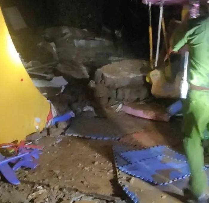 Một số hình ảnh người dân ghi nhận vụ sạt lở làm đổ tường của một gia đình trong lúc mưa, làm 3 cháu nhỏ tử vong.
