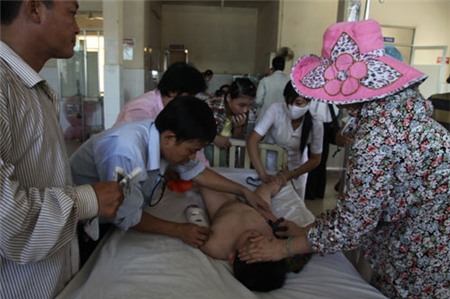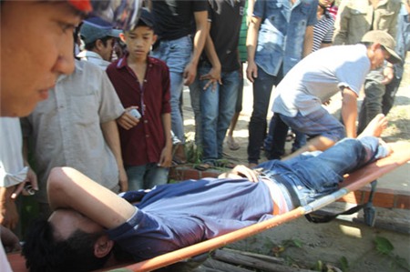Nạn nhân Phạm Ka Din được đưa vào cấp cứu. |