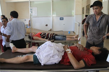 Các bác sĩ đang sơ cứu cho nạn nhân ở Bệnh viện đa khoa H.Điện Bàn. |