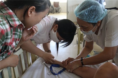 Thị Xuân Trang (38 tuổi) đang được cấp cứu. Các bác sĩ đã dỗ cháu Đức