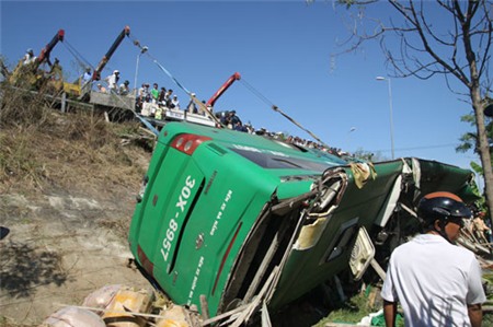 vào ta luy và rơi xuống hố sâu hơn 8 m, làm ít nhất 3 người chết và 30