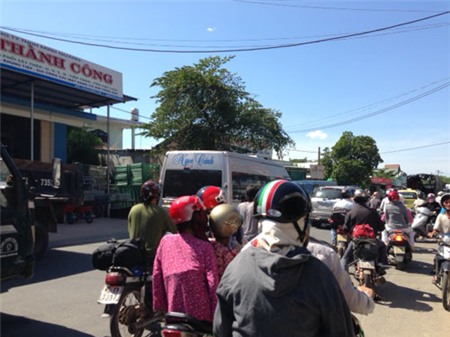QL1A bị phong tỏa nên đường tránh qua thị trấn Vĩnh Điện, H.Điện Bàn quá tải bởi các loại xe đổ vào lưu thông. |