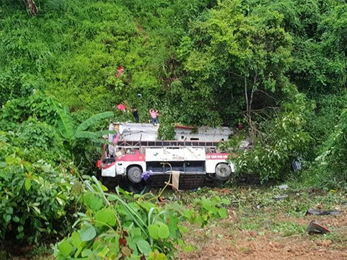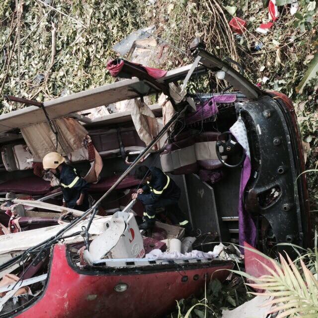 Lực lượng cứu hộ nỗ lực tìm kiếm người mắc kẹt trong xe khách lao vực