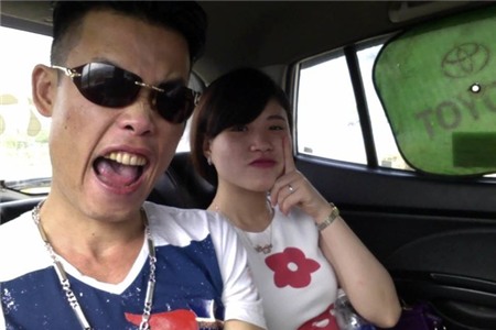 Hiệp gà liên tục tạo dáng cùng cô trên ô tô.